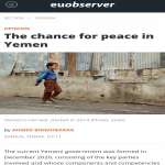 وزير الخارجية وشؤون المغتربين يكتب لصحيفة EU Observar اليمن وفرصة تحقيق السلام بقلم / د أحمد عوض بن مبارك تشكلت حكومة الكفاءات السياسية الحالية في اليمن في ديسمبر من ال...
