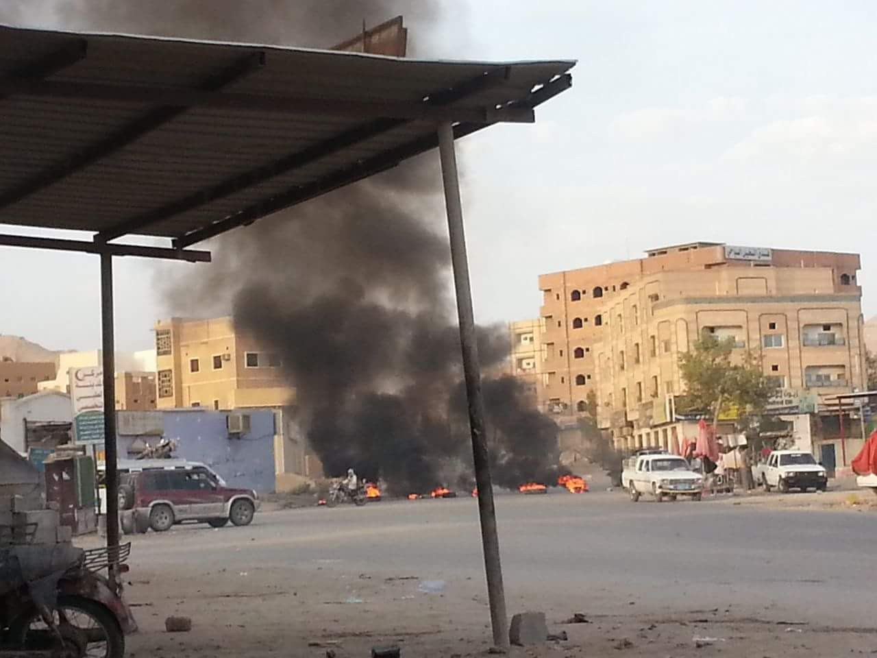 وقال سكان محليون لكريتر سكاي:ان مدينة سيئون شهدت عصيان مدني احتجاج على انهيار العملة حيث تم اغلاق المحال التجارية وعدد من الطرقات.