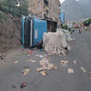 انقلاب دينة محملة بالرمان في المنفذ الشرقي لتعز