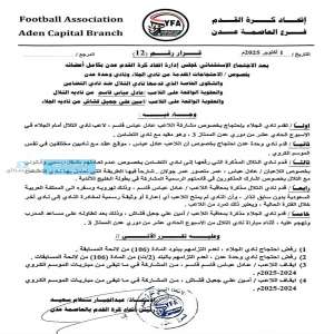 اصدر الاتحاد اليمني لكرة القدم فرع عدن قرارا قضى بوقف اللاعب عادل عباس عن لعب باقي مباريات الموسم.يا...