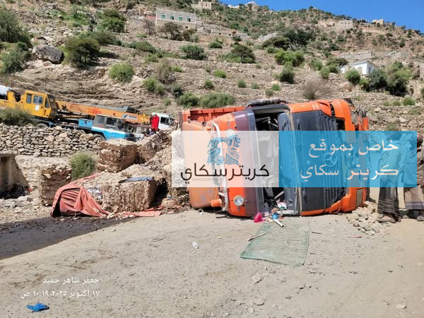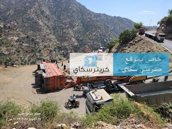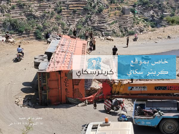 وقال شهود عيان إن الحادث وقع أثناء مرور الشاحنة في منحدر جبلي، مرجحين أن السرعة الزائدة أو خللاً في المكابح كانا وراء الانقلاب، فيما لم ترد أنباء عن وقوع إصابات حتى لحظة كتابة الخبر.