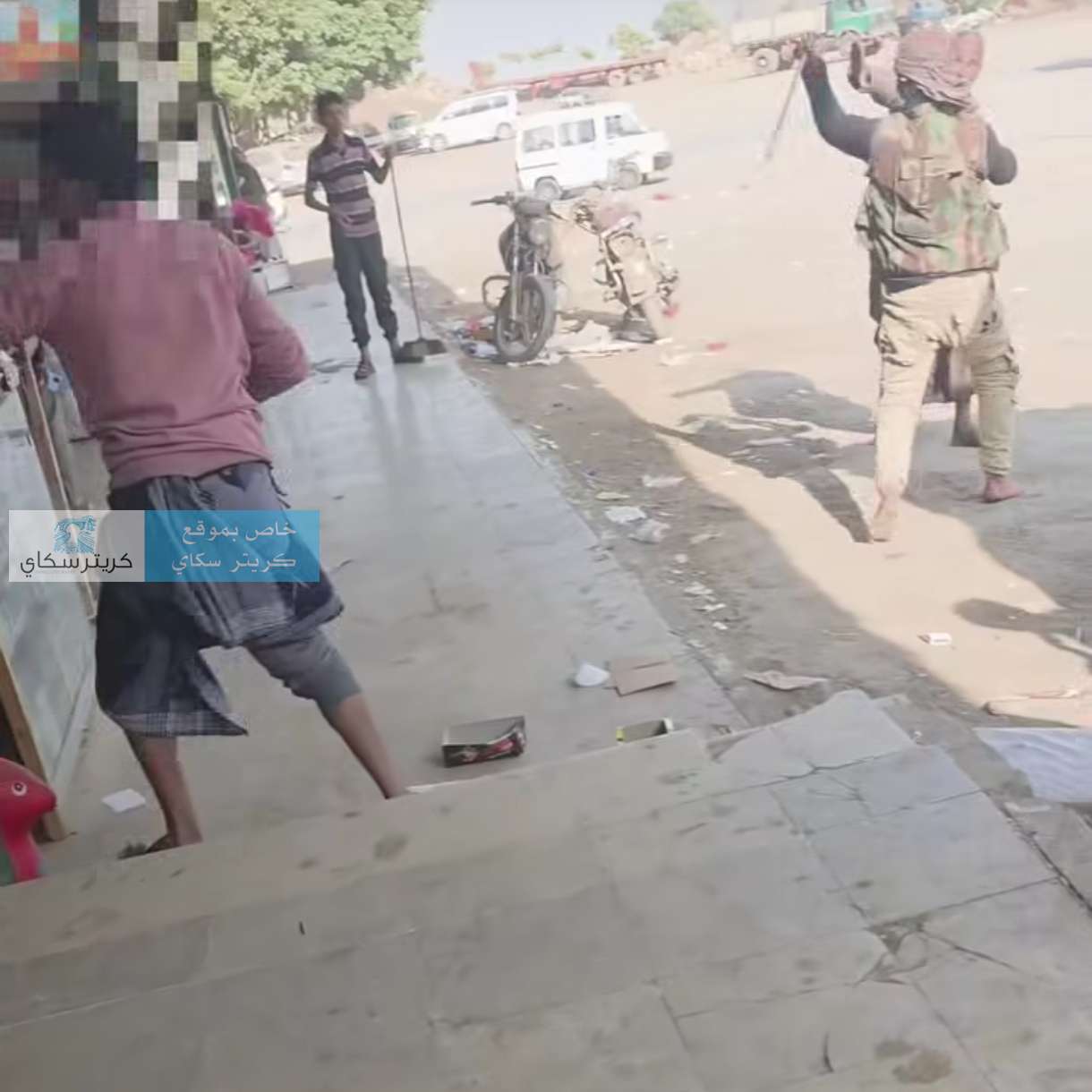 وبحسب ناشطون لكريتر سكاي فان الشباب ابرحوا المختل عقليا ضربا الى ان اغمي عليه بالشارع والدماء تسيل من راسه.