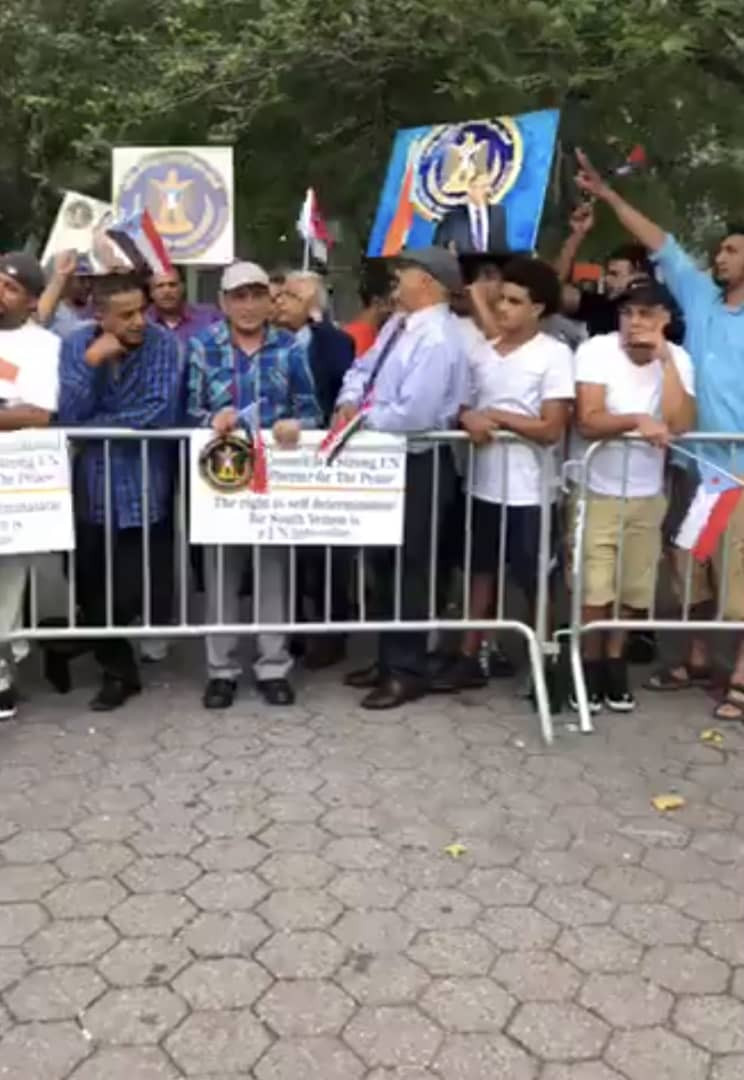 وفي بداية الوقفة الاحتجاجية والتي نضمت أمام مبنى الأمم المتحدة بنيويورك اعلن المحتجون عن تأييدهم الكامل لبيان المجلس الانتقالي حول مشاورات جنيف.
