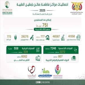 بتمويل مركز الملك سلمان للإغاثة والأعمال الإنسانية..مراكز فاطمة بابطين الطبية تقدّم خدماتها لـ 751 مستفيداً خلال عام 2025م