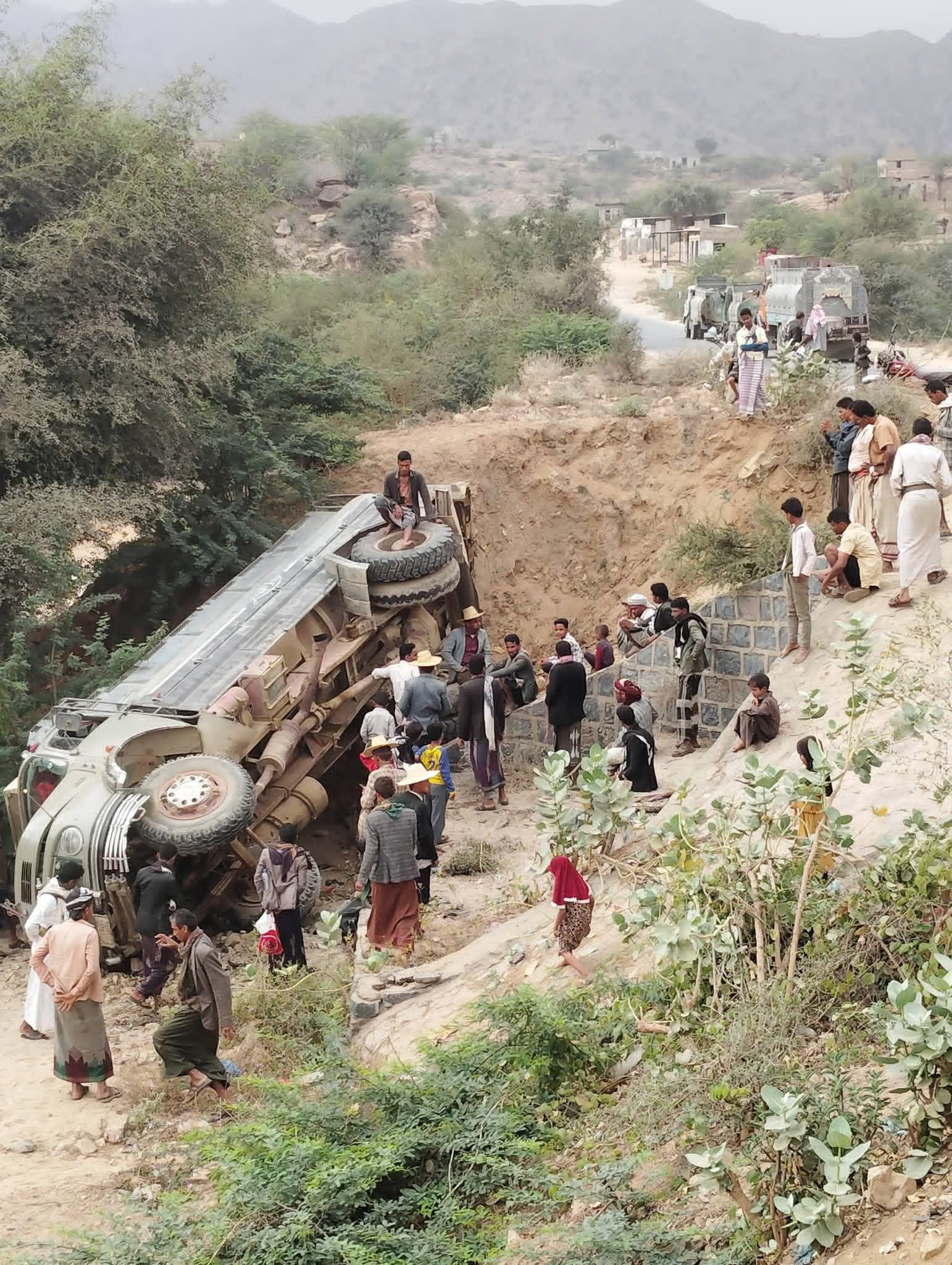 وأوضحت المصادر أن الناقلة انحرفت عن مسارها في أحد المنعطفات الجبلية بالمنطقة، مما أدى إلى انقلابها وتضررها بشكل كبير. وأرجع شهود عيان أسباب الحادث إلى السرعة الزائدة التي أفقدت السائق السيطرة على المركبة في تلك التضاريس الوعرة.