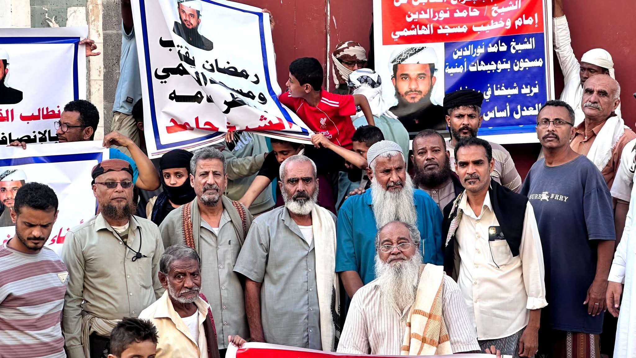 نظم العشرات من أبناء مديرية الشيخ عثمان بمحافظة عدن، عصر اليوم، وقفة احتجاجية طالبوا خلالها رئيس مجلس القيادة الرئاسي، والنائب العام، ومحافظ محافظة عدن، ورئيس محكمة الاستئناف بعدن، بسرعة الإفراج عن الشيخ حامد نورالدين، إمام وخطيب مسجد الهاشمي، المحتجز في سجن البحث الجنائي بعدن منذ أكثر من ثلاثة أشهر.