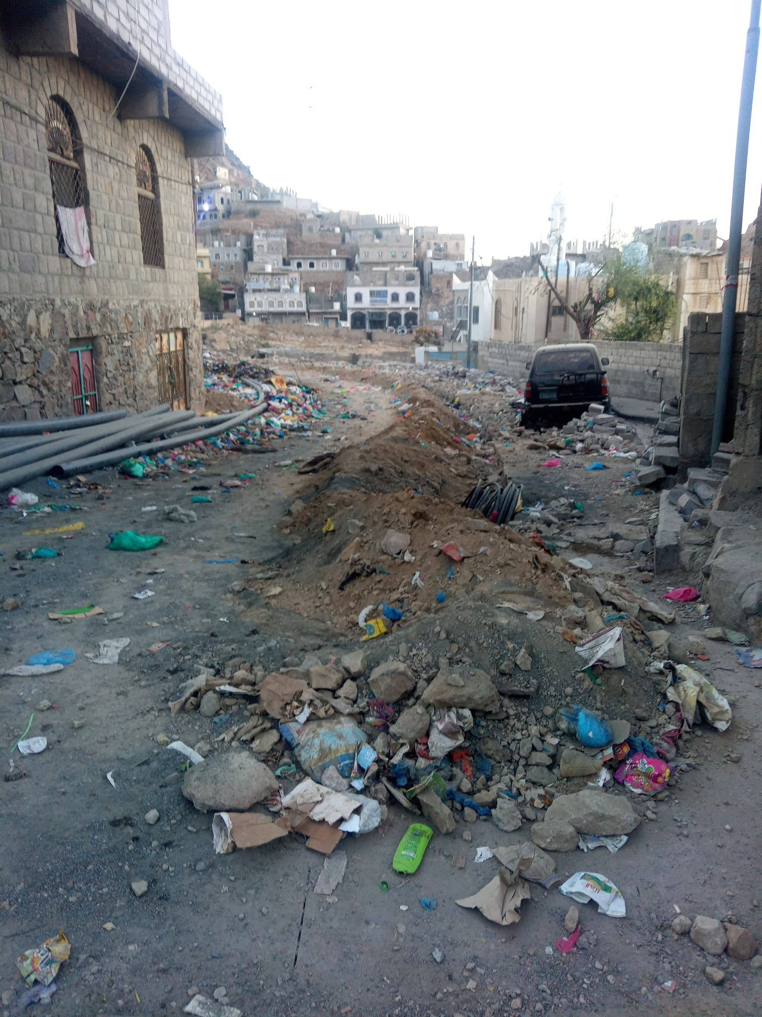 نفذ صندوق النظافة والتحسين بمحافظة تعز، اليوم، حملة طارئة لرفع مخلفات القمامة والنفايات المتكدسة بجوار مقبرة صينة، وذلك بإشراف مباشر وميداني من مدير عام الصندوق، الدكتورة أسمهان علي.