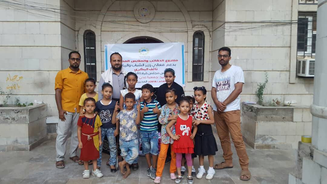 دشن مدير عام مديرية البريقة بمحافظة عدن هاني محمد اليزيدي ، مشروع توزيع الحقائب والملابس المدرسية لأبناء الشهداء بالمديرية ، المقدمة من معالي وزير الشباب والرياضة - رئيس مجلس قيادة المقاومة - نائف البكري ، وتنفذه جمعية عدن للتنمية .
