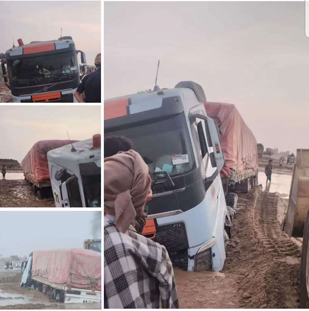 تعرضت شاحنة نقل للغرق في الوحل بعد تدفق سيول وادي مذاب في محافظة الجوف، ما أدى إلى تعطلها وسط الطريق في منطقة قريبة من اليتمة.