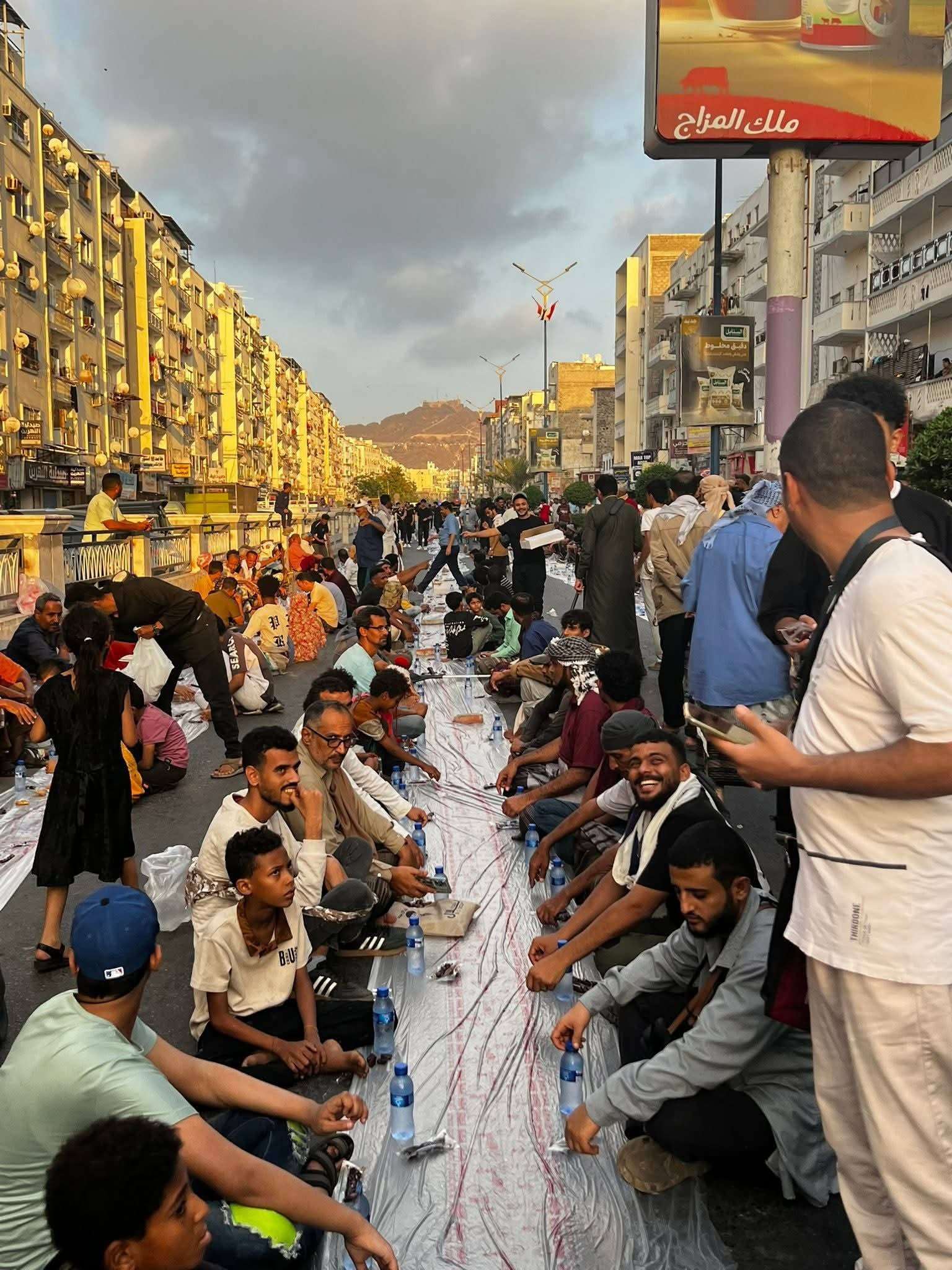 وتوافد العشرات من المواطنين للشارع الرئيسي للمشاركة بالافطار