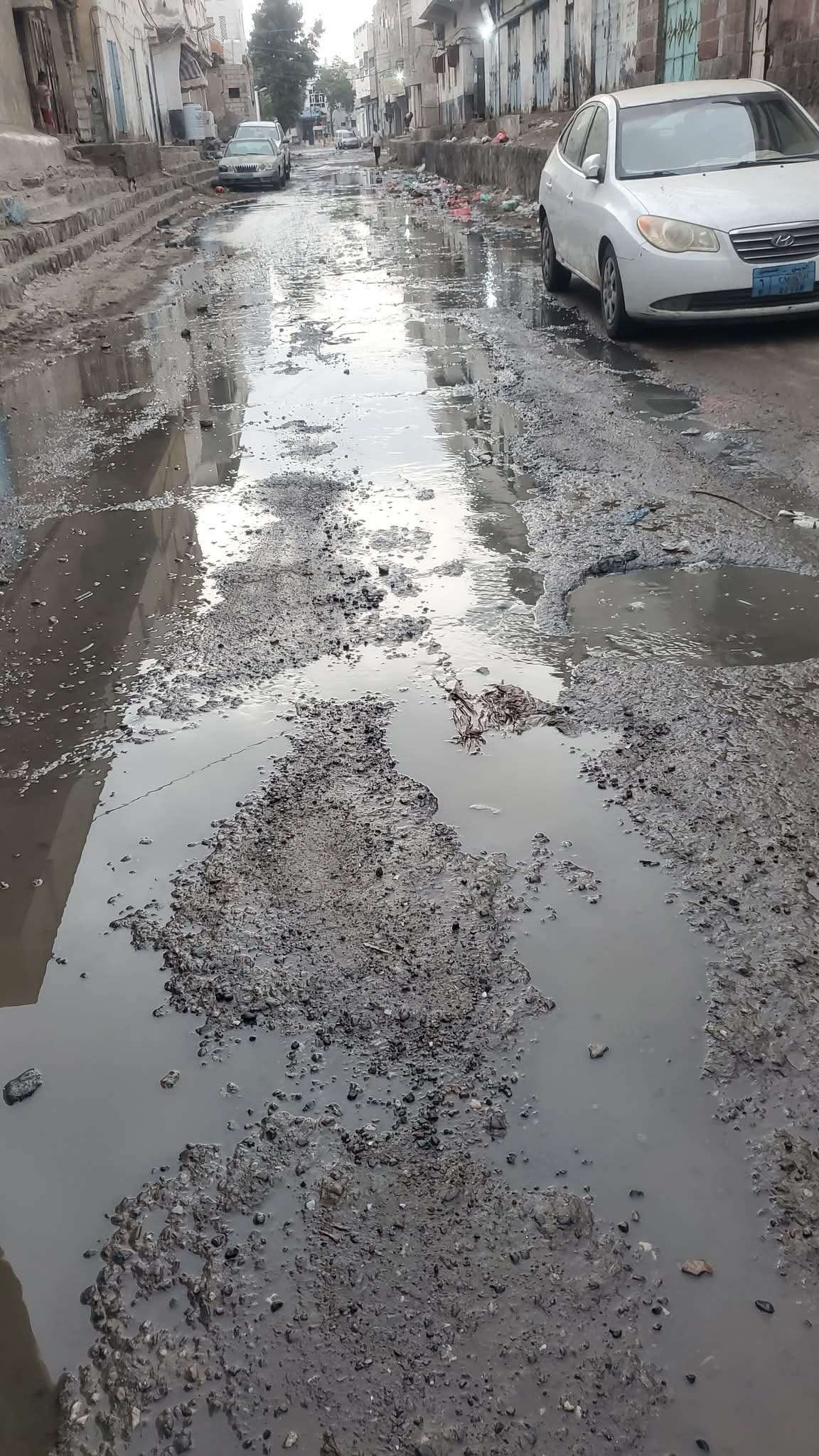 شهد أحد الشوارع أمام القصر الجمهوري في مدينة تعز، اليوم 28 رمضان، انتشاراً واسعاً للمياه الراكدة والوحل في الطريق، نتيجة طفح مياه يشتبه أنها ناتجة عن شبكة الصرف الصحي، ما تسبب في صعوبة مرور المركبات والمارة.