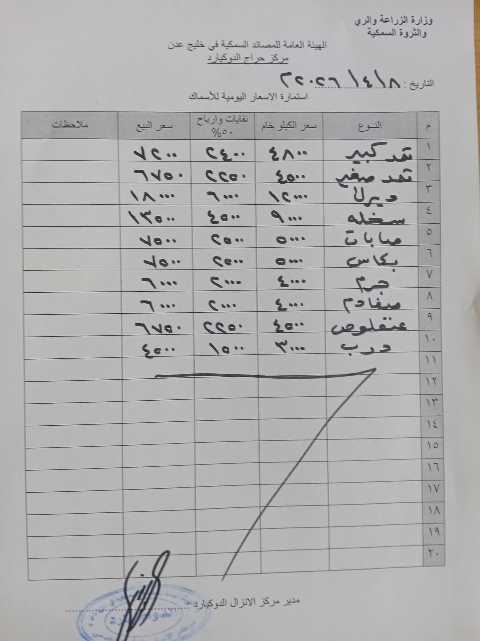 أسعار الأسماك في عدن – تحديث رسمي من الهيئة العامة للمصايد السمكية