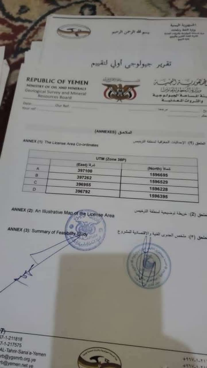 بحسب مصادر قريبة من المستثمر اللكيمي، فإنه تقدم بطلب تصريح لإنشاء مشروع في قطاع التعدين لاستخراج الرخام والجرانيت من منطقة جبلية ضمن أملاكه في مديرية القفر بمحافظة إب (وسط اليمن)، وحصل على الترخيص من هيئة المساحة الجيولوجية والثروات المعدنية في صنعاء.