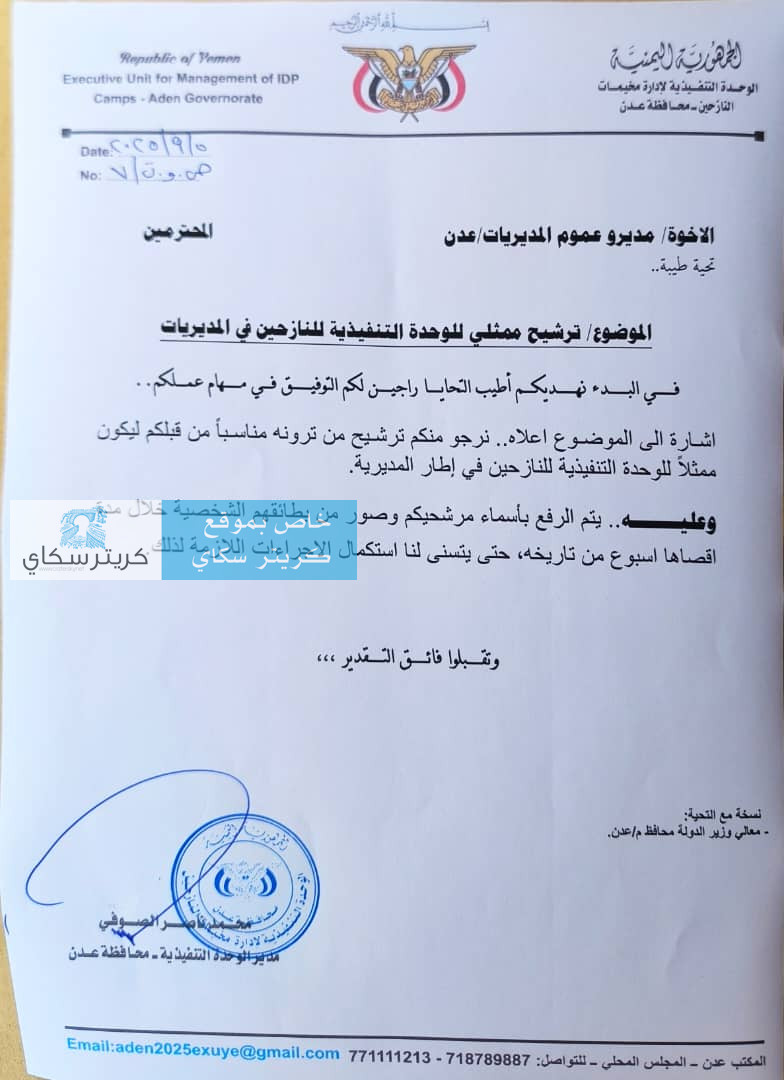 وطالب ناشطون الجهات الرسمية، وفي مقدمتها رئيس الوزراء ومحافظ عدن، بالتدخل العاجل لوضع حد لمعاناة النازحين، والتحقيق في الشكاوى المطروحة، وضمان حماية حقوقهم وتحسين أوضاعهم المعيشية.