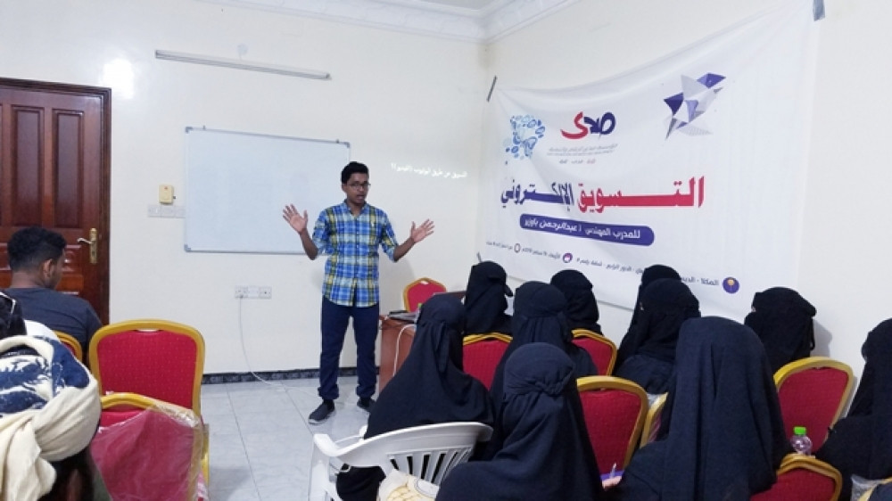 نظمت مؤسسة صدى للإعلام والتنمية، مساء الأربعاء، بمدينة المكلا، عاصمة محافظة حضرموت؛ محاضرة تدريبية عن التسويق الإلكتروني، قدمها المدرب والمهندس عبدالرحيم باوزير، المتخصص في مجال تكنولوجيا المعلومات.