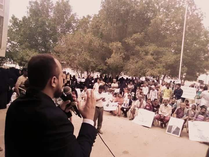 وخرج العشرات من المتظاهرين تلبية لدعوة هاني اليزيدي مدير عام مديرية البريقة لدعم الرئيس هادي.