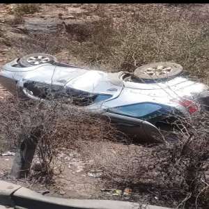 نجاة مسؤولين من حادث انقلاب مروع في نقيل الشيم