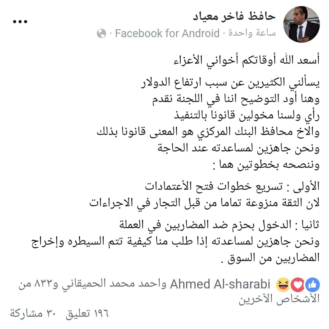 والاخ محافظ البنك المركزي هو المعنى قانونا بذلك