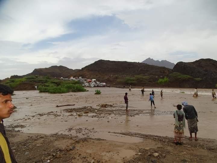 قطعت أمطار غزيرة وسيول جارفة طريق الآف المسافرين في سيلة بله بمحافظة لحج.