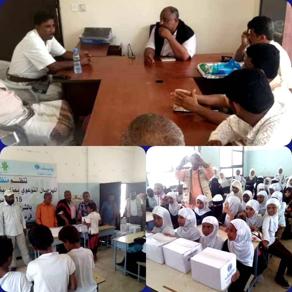 قام الشيخ ناصر عبدالله المنصري مدير عام خنفر اليوم الثلاثاء16اكتوبر 2018م بزيارة ميدانية إلى ثانوية الحصن والإطلاع على أعمال التشجير في الثانوية ضمن مشروع التوظيف في حالة الطوارئ ثم توجه مدير عام خنفر يرافقه مدير مكتب التربية والتعليم محمود سبعه إلى مدرسة طارق بن زياد بمنطقة حلمه والمشاركة في المهرجان التوعوي الذي تقيمه اليونيسيف بالشراكة مع مؤسسة شباب أبين وتم مشاركة طلاب المدرسة فقرات الفعالية المقامة بمناسبة اليوم العالمي لغسل اليدين بحضور الأستاذ حمدي سالم منصور الحيدري رئيس مؤسسة شباب أبين وابراهيم الخاشعة شيخ منطقة حلمه .