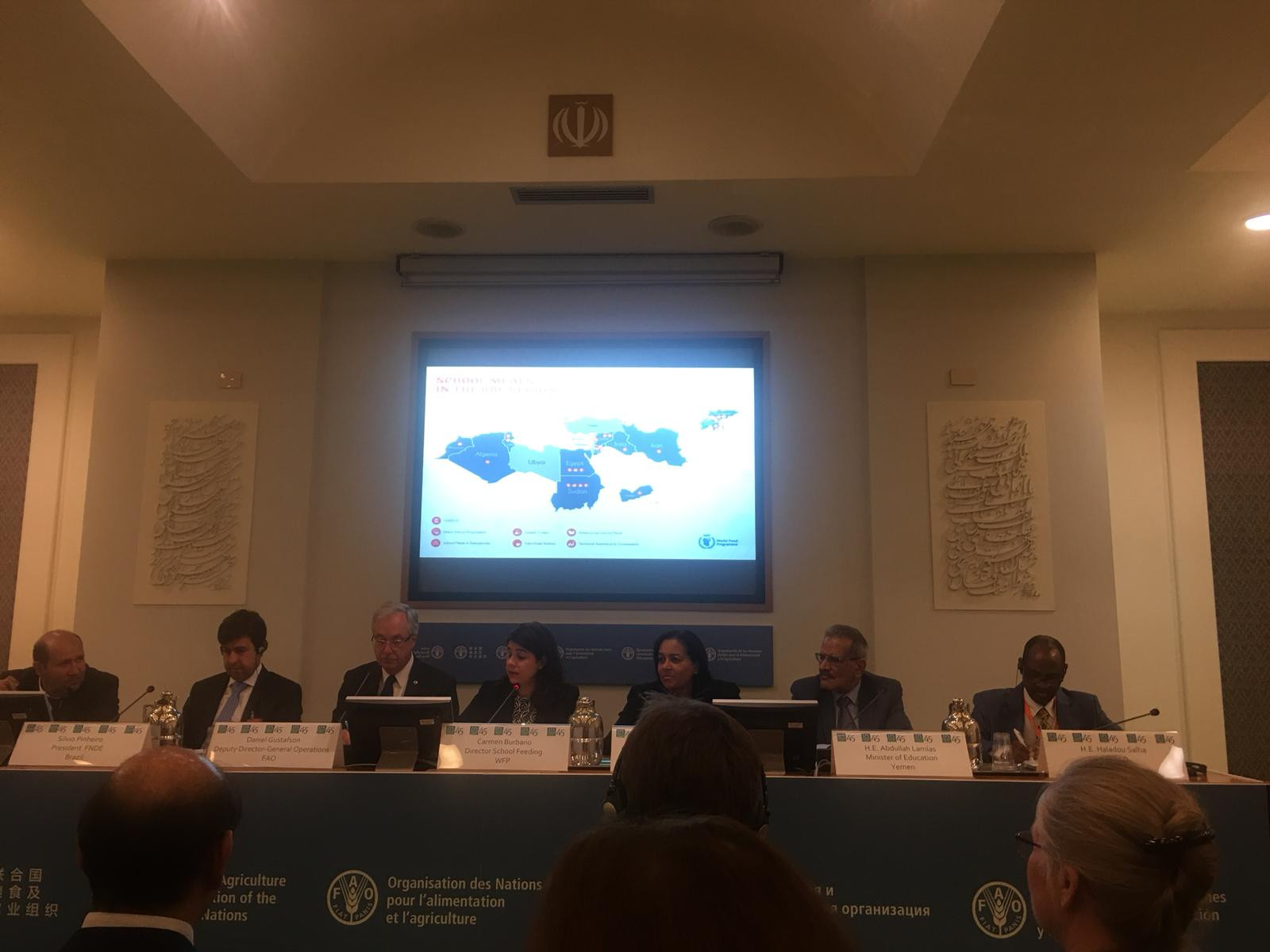 دعا معالي الدكتور عبدالله لملمس وزير التربية والتعليم برنامج الأغذية العالمي(WFP)إلى توسيع مشروع التغذية المدرسية والذي ينفذه في بلادنا بهدف الوصول إلى 3 مليون مستفيد في جميع أنحاء البلاد في الفترة المقبلة وذلك لما لها من دور إيجابي في تحفيز التحاق الطلاب بالمدارس، جاء ذلك في كلمته التي القاها أثناء مشاركته في الفعالية الجانبية التي عقدت مساء يوم أمس في العاصمة الإيطالية روما على هامش أعمال الدورة الـ45 للجنة الأمن الغذائي العالمي،والتي قام بتنظيمها برنامج الأغذية العالمي ومنظمة الأمم المتحدة للأغذية والزراعة(الفاو)والخاصةبـ(برامج الوجبات المدرسية المتكاملة للمساهمات المتعددة في أهداف التنمية المستدامة:الممارسات الجيدة والتحديات والفرص للابتكار والتعلم والتوسع).كما أستعرض وزير والتربية والتعليم مستجدات الوضع الإنساني الحرج في بلادنا، وجهود الحكومة لعودة الأطفال إلى المدارس وضمان إستدامة العملية التعليمية،من خلال دخولها في شراكات تعاون مع منظمات ووكالات الأمم المتحدة ومن بينها برنامج الأغذية العالمي الذي أستئنف مشروع التغذية المدرسية في اليمن في إبريل الماضي ويستفيد منه حالياً حوالي 600 ألف طالب.