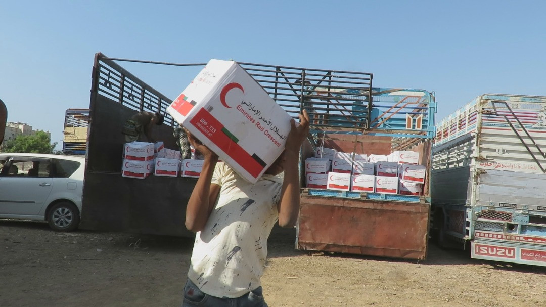 وأوضح الأخ محمد الاغبري المتطوع بالعمل مع هيئة الهلال الأحمر الإماراتي أن القافلة الإغاثية التي سيرتها هيئة الهلال الأحمر الإماراتي إحتوت على ألف سلة غذائية تم توزيعها على ذوي الإحتياجات الخاصة والأيتام و الاسر الأشد فقرا في منطقة شقرة الساحلية بمحافظة أبين
