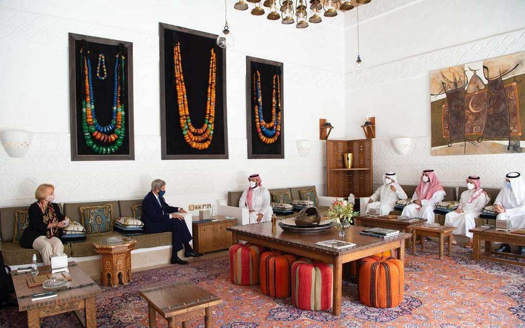 وحضر اللقاء وزير الطاقة، الأمير عبدالعزيز بن سلمان، ونائب وزير الدفاع، الأمير خالد بن سلمان، ووزير الخارجية، الأمير فيصل بن فرحان، ووزير البيئة والمياه والزراعة، عبدالرحمن الفضلي.