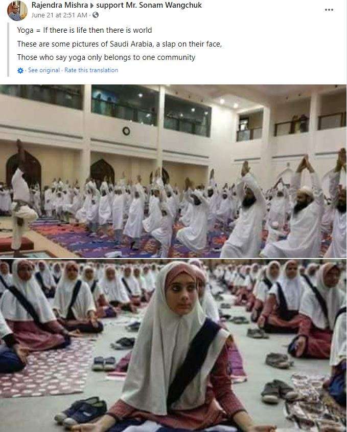 كما تداول رواد مواقع التواصل صورة لجلسة يوغا نسائية، كل من شارك بها كن من المحجبات، تبين أنها التُقطت في الهند، وليس بالسعودية.