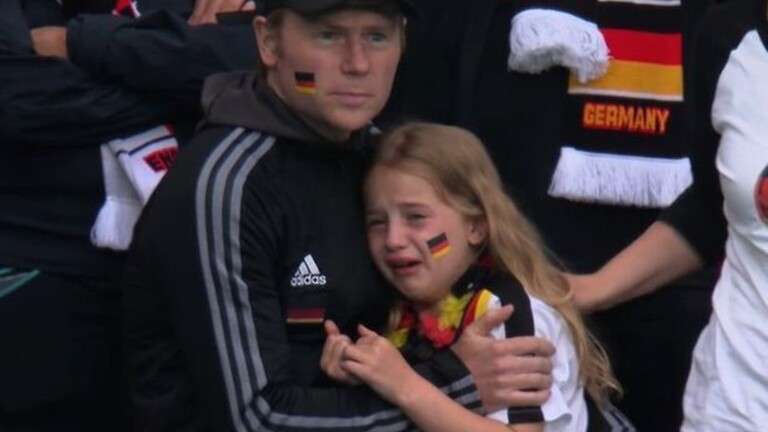 وفي نهاية المباراة، أظهر المخرج على لوحة النتائج مشهد المشجعة الألمانية الصغيرة وهي تبكي بحرقة على خسارة منتخب بلادها بين ذراعي والدها.