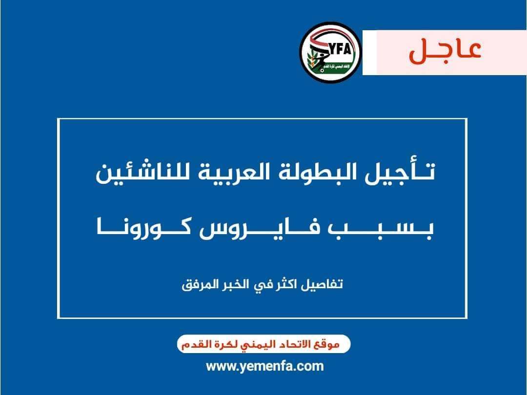 اقر الاتحاد العربي لكرة القدم تأجيل كأس العرب للناشئين المقرر إقامته خلال الفترة (29 يوليو حتى 14 أغسطس ) بسبب جائحة كورنا .