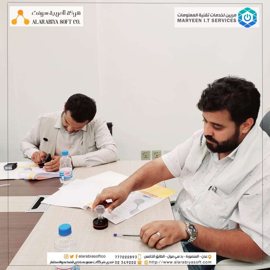 وقعت "شركة العربية سوفت للأنظمة والحلول التقنية" متمثله بالاستاذ ماهر صالح باحاج مع شركة مريين للخدمات التقنية والمعلومات، المتمثله بالاستاذ سالم محمد