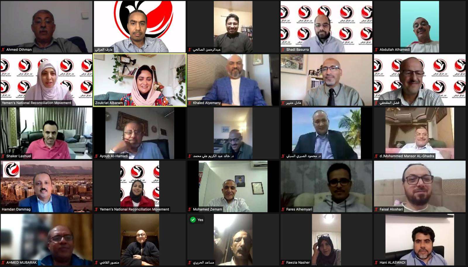 وفي نهاية جلسات اللقاء تم فتح باب المداخلات والنقاش لجميع أعضاء المجلس التنفيذي الذي أثروا اللقاء بالعديد من الآراء والاقتراحات البناءة والقيمة فيما يخص توجهات التيار وسياساته والقضايا التي ينبغي أن تتصدر اهتماماته في المرحلة المقبلة وشددوا على أهمية الإسراع في التحرك في كل ما من شأنه إنقاذ اليمن والوصول إلى السلام المستدام والشامل.