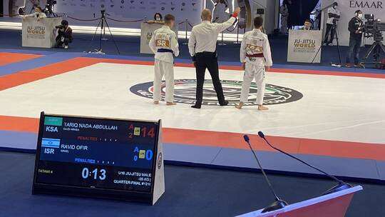 تغلب السعودي عبد الله ندا على منافسه الإسرائيلي رافد عوفر بنتيجة 14-0 بالنزال الذي جمعهما اليوم الأحد ضمن بطولة العالم للجوجيتسو تحت 16 عاما التي تستضيفها مدينة أبو ظبي الإماراتية.