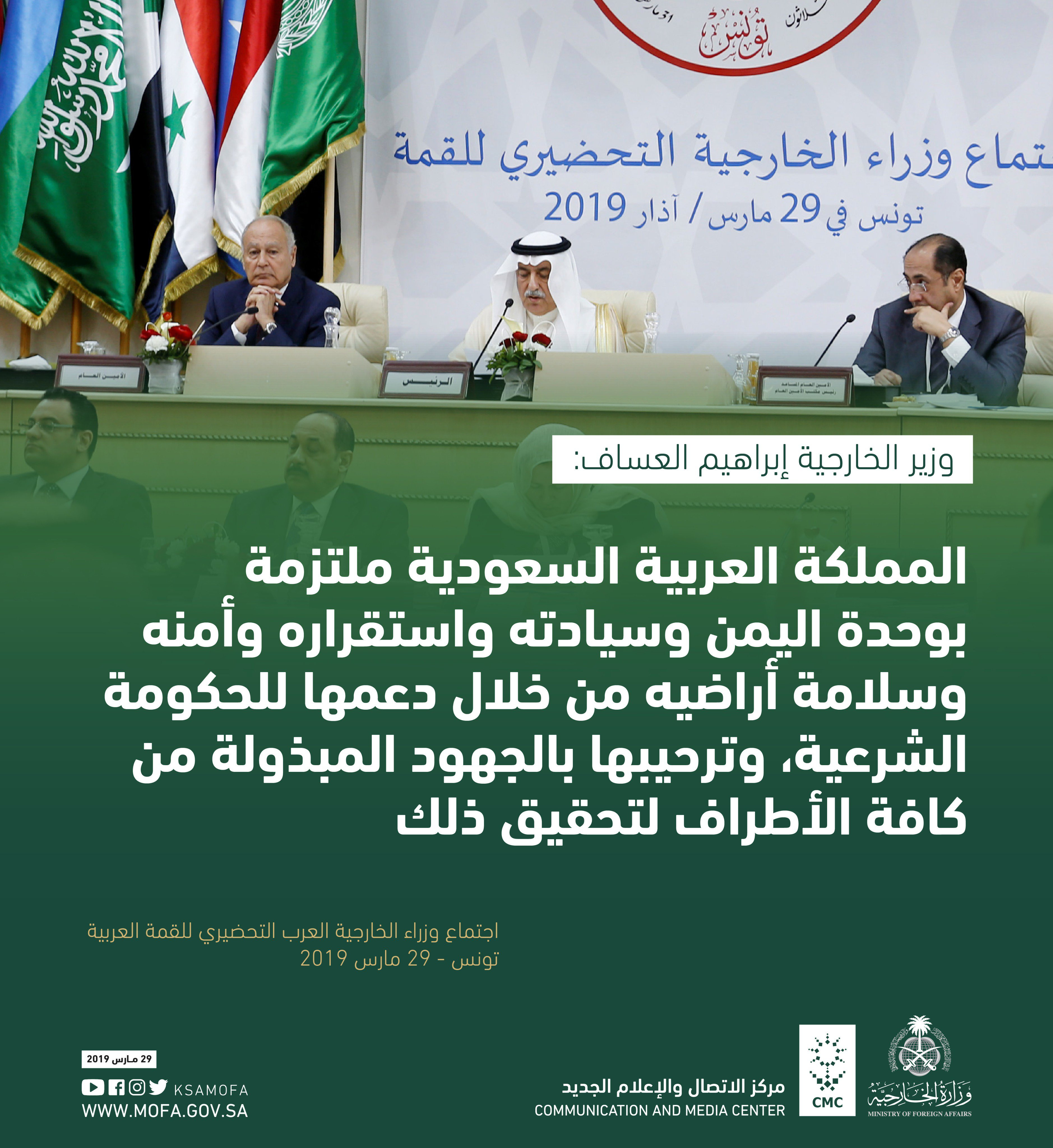 وقال العساف:" المملكة العربية السعودية ملتزمة بوحدة #اليمن وسيادته واستقراره وأمنه وسلامة أراضيه"
