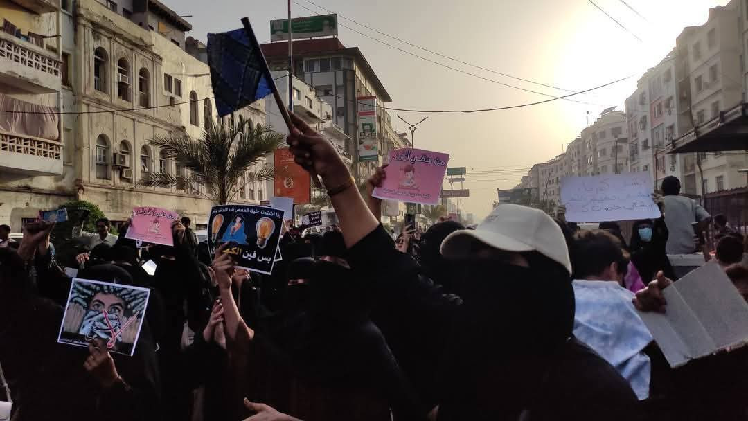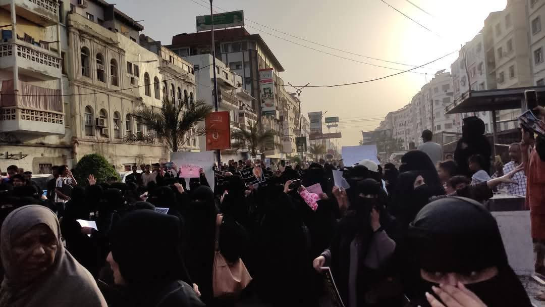 تمكنت حرائر عدن من كسر الحصار الذي فرضته القوات الامنية واقتحام الشارع الرئيسي بقوة الحق للمطالبة بتوفير الكهرباء