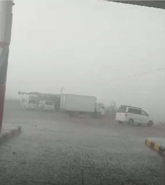 وأوضح الأهالي أن العاصفة تسببت في تدفق السيول بعدد من الأودية، وسط تحذيرات من مخاطر العبور في مجاري السيول والانخفاض في مدى الرؤية بسبب شدة الأمطار والسحب الكثيفة.