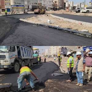 بلغت نسبة الإنجاز الفني في المرحلتين الأولى والثانية من مشروع إعادة تأهيل وصيانة شارع الخمسين بمديري...