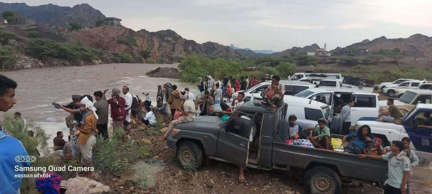 شهد طريق سيله بله بلحج تدفق لسيل جارف بهذه الاثناء تسبب بتوقف السير