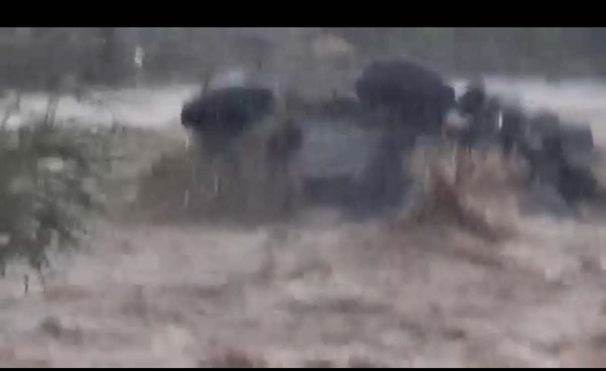 وبحسب ناشطون حيث ان السيل جرف سيارته وتم انقاذ عائلته فيما هو لازال مفقود.