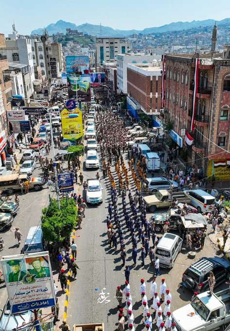 وأشار إلى أن تعز بعروضها العسكرية والتنظيم المدني لاستقبال رموز الدولة، تؤكد أنها “مدينة تؤمن بالمدنية وترفض الفوضى”، مضيفًا أن هذه المشاهد “تُثبت أن تعز ترفض الميليشياوية والهمجية، وتصر على بناء دولة القانون والمؤسسات.”