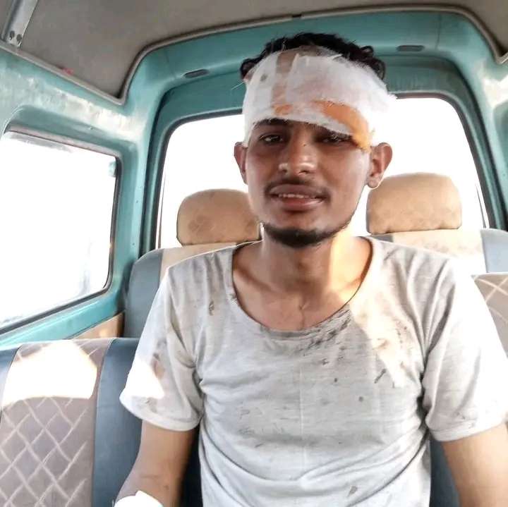 تداول ناشطين في مواقع التواصل الاجتماعي صورة لاحد الناجيين من حادثة إحتراق باص نقل جماعي في الطريق الدولي بمحافظة ابين جنوب اليمن .