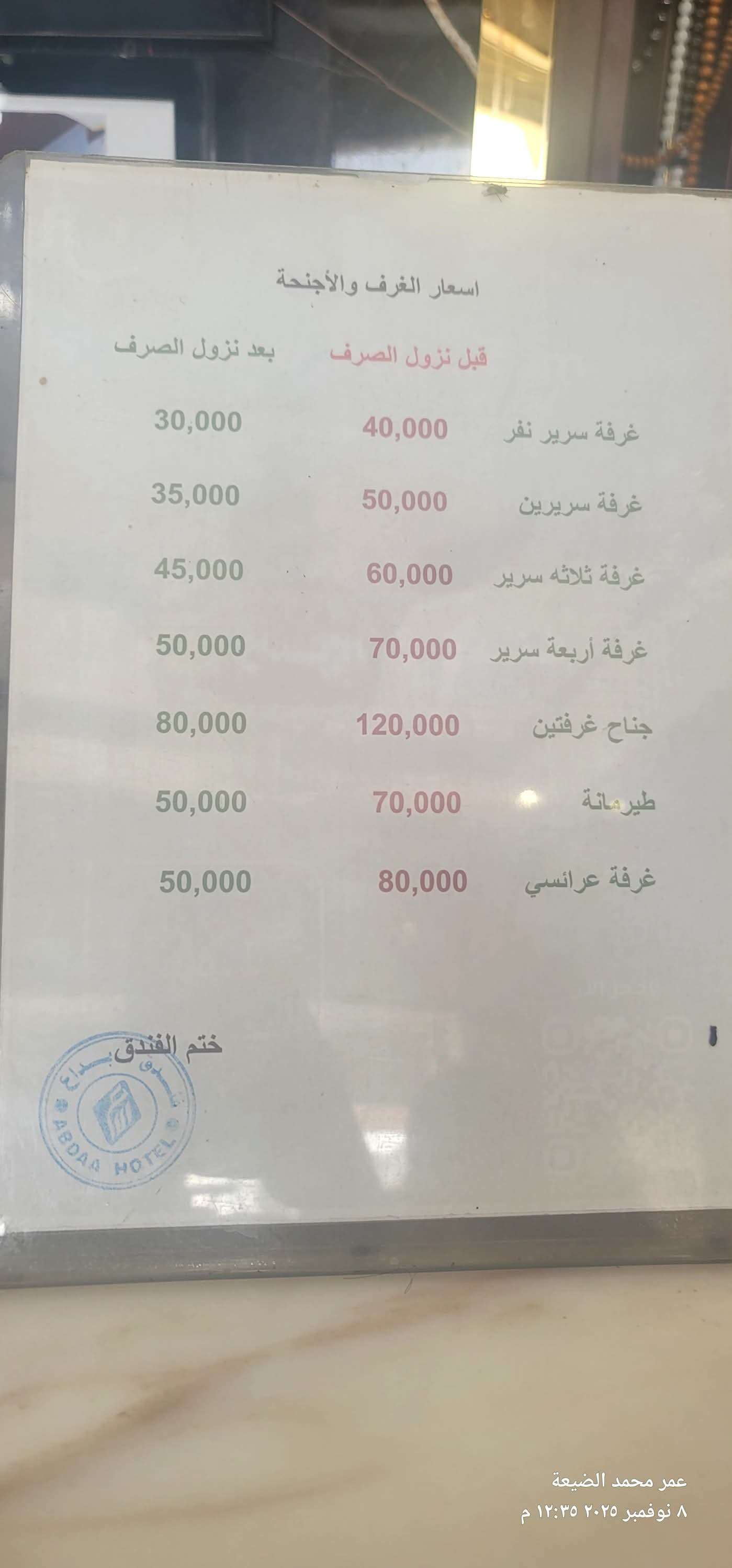 | غرفة سرير نفر | 40,000 | 30,000 | 25% |