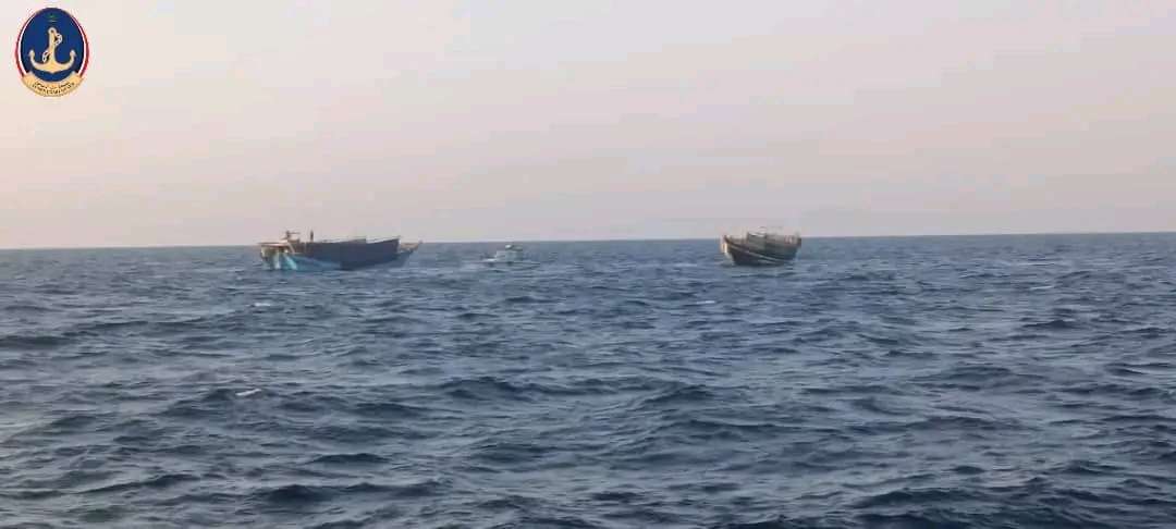 وقال بيان صادر عن إعلام خفر السواحل إن السفينتين، وتحملان اسمي "السلام" و"الخير 3" تم اعتراضهما، فجر الأربعاء الماضي، على بعد نحو 70 ميلاً بحرياً غرب ميناء عدن، وكانتا في طريقهما إلى منطقة رأس العارة، التي تعد من نقاط الإنزال غير الشرعية المستخدمة في عمليات التهريب.