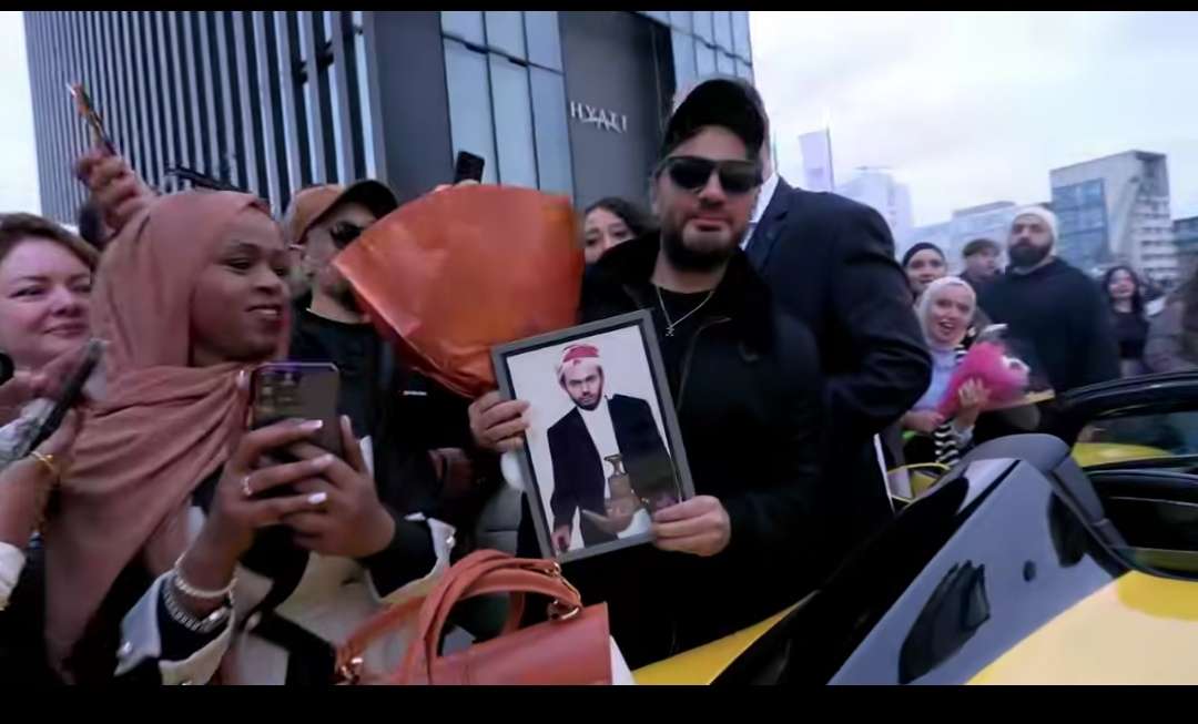 واثناء وصول الفنان تامر حسني الى المانيا كان باستقباله جموع غفيرة من جمهوره بينهم فتاة يمنية قدمت هدية للفنان تامر حسني عبارة عن صورة للفنان وهو مرتدي الزي اليمني