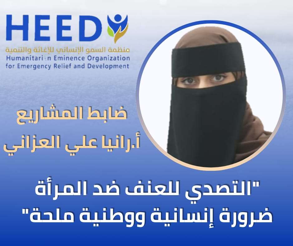 شددت أ. رانيا علي العزاني ضابط المشاريع في منظمة السمو الإنساني للإغاثة والتنمية على أن مواجهة العنف القائم على النوع الاجتماعي ليس مجرد التزام حقوقي بل ضرورة إنسانية ووطنية ملحة لحماية المرأة وتعزيز استقرار المجتمع.