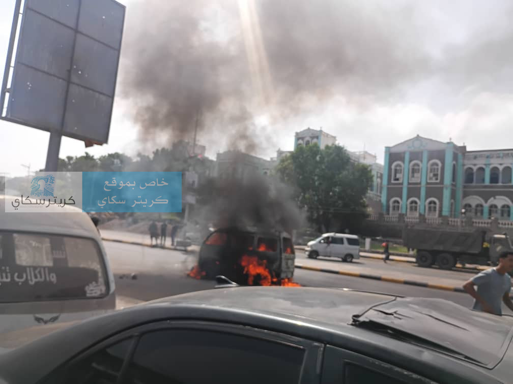 بحسب مواطنون لكريتر سكاي فان الحريق التهم الباص بالكامل وبسبب تاخر الدفاع المدني قامت بوزة مياه باخماد الحريق