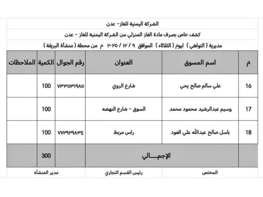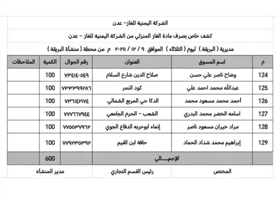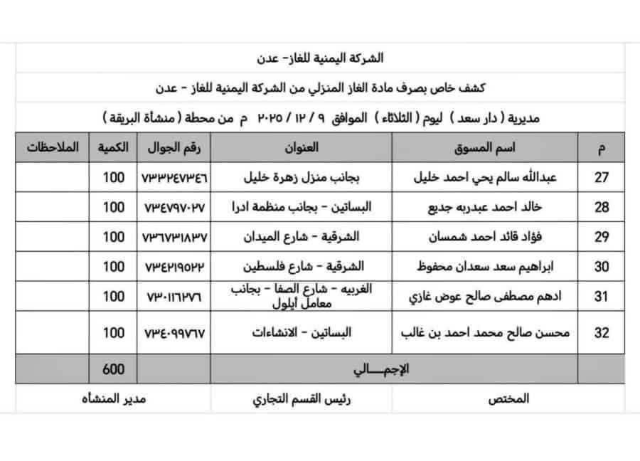 وأكدت المصادر أن أي مركز يخلّ بالتسعيرة الرسمية أو يخالف نظام التوزيع سيُرفع اسمه فورًا إلى السلطة المحلية أو اللجان المجتمعية، لاتخاذ الإجراءات الرادعة بحقه، بما يضمن وصول الغاز إلى المواطنين بالسعر المقرر ومنع أي استغلال للأزمة الحالية.