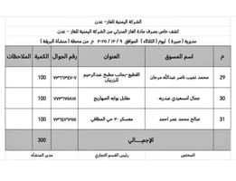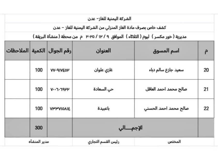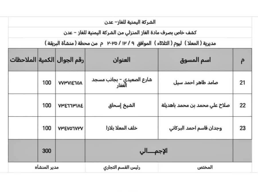 أعلنت مصادر محلية في مديرية الشيخ عثمان بعدن أن كمية الغاز المخصصة لليوم الثلاثاء تبلغ 600 أنبوبة غاز خاصّة، سيتم توزيعها على المراكز المعتمدة وفق نصيب كل منطقة، وبحسب الكشوفات المتواجدة لدى اللجان المجتمعية.