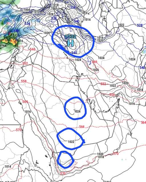 التوقعات تشير إلى أن المسار البارد من شمال شرق اليمن نحو حضرموت والمهرة سيكون نتيجة تشكل مرتفع جوي سطحي جنوب شرق السعودية، بينما سيظل المسار الغربي للكتلة الباردة فوق المرتفعات الغربية، مع اشتداد البرودة تدريجيًا في الأيام التالية.