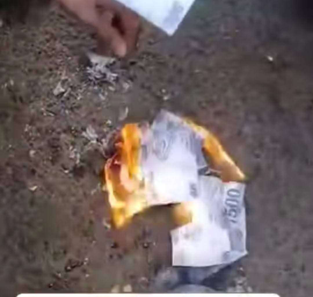 غضب وجدل واسع عقب قيام متظاهرين باحراق الريال السعودي في ساحة العروض